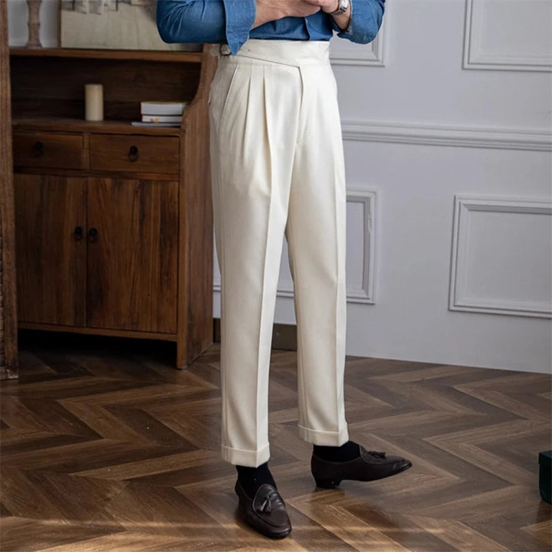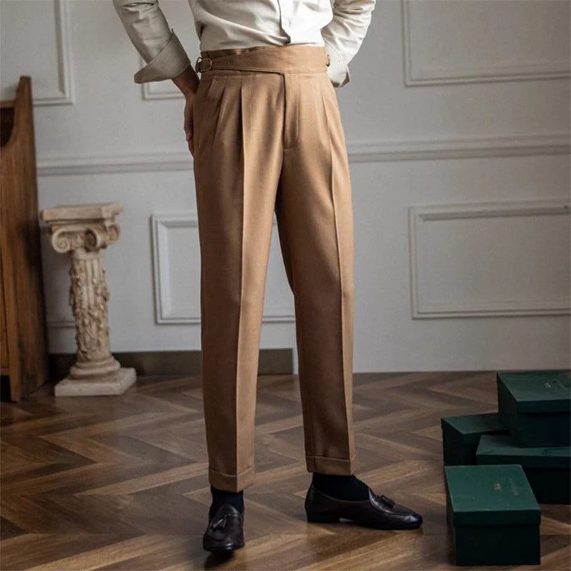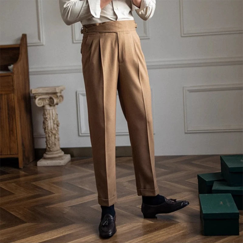 Introducing our Men's Luxury Trousers, designed with a vintage style that exudes sophistication. Made with high-quality materials, these trousers provide both comfort and style. Elevate your wardrobe and make a statement with these timeless trousers.